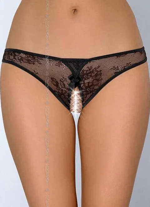 Axami Obsession G String from the Sexy Line Scent of a Woman is an incredibly sexy black Brazilian string with delicate openwork lace and sexy cut-outs. The string is decorated with wide satin bands to match the bra and highlight your hips.