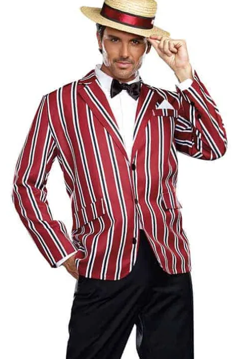 This dapper Dreamgirl 3 Pce 1920’s Costume will instantly transform you in to fun time Charlie for any party! The classic striped three button jacket, bow tie and straw hat have you suited, booted and irresistible.