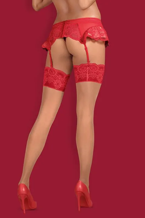 Obsessive 853-STO Red stockings are made from high quality transparent and soft mesh fabric and are a dream to wear. Note stockings are not supporting and need a garter belt