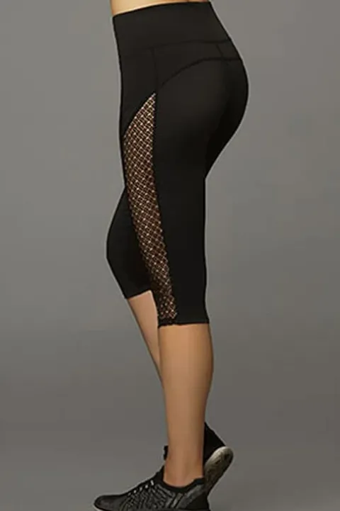 Seven Til Midnight Capri Leggings made from lightweight, comfortable and stretchy and Microfiber to hug your legs and show your curves. The cropped capri leggings are sexy and trendy with side netting down the sides for breath-ability during that hard work out or just on a hot day